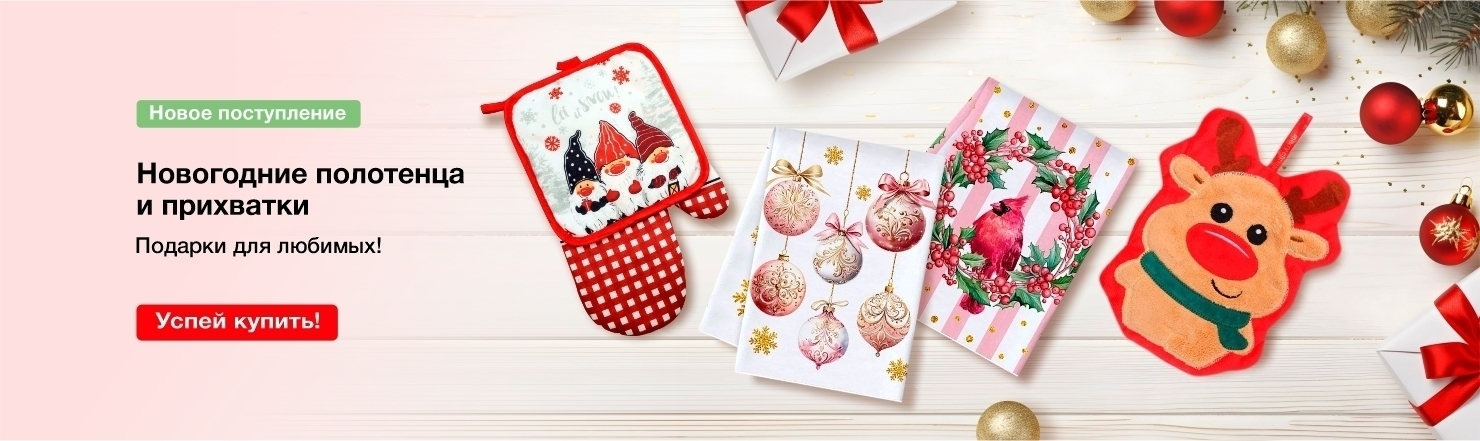 Новогодний текстиль поможет создать атмосферу праздника, а также станет практичным подарком для себя и близких! Купить полотенца, кухонные прихватки с новогодним принтом Вы можете на сайте РЦ Восток по выгодным ценам уже сейчас!